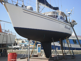 As we wanted to do our own work we organised to liftout at the fishing village of Marsaxlokk on the southeastern corner. The Marsaxlokk Haulout Yard primarily deals with fishing boats and has both a 50 ton and 250 ton travel lift. We were very happy with our week there, even though we were delayed a week as they had no cradle available for us. If you were on a schedule I could not recommend it here currently but if you had plenty of time, were already in Malta and took the bus down to Marsaxlokk to organise it then it is great. It is really the sort of place you need to organise in person. The cost for lift/drop, powerwash, 2 weeks on the hard (maybe minimum charge as we were only 1 week), power, water was €492.57 inc VAT. It is shallow getting in but at 2.4metres we made it - just. There are mooring buoys off the slipway, we picked one up for the night the day we splashed. Marsaxlokk is a cute little place and has a busy Sunday market.