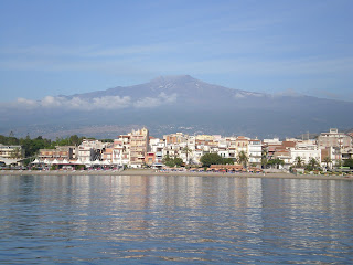 We arrived mid afternoon in the anchorage of Taormina, set in a stunning location under the ancient town perched high above clinging to the cliff top. We had been forwarned on our morning radio net that it was rolly in there and it hadn't settled down so we motored to the southern end of the bay to the town of Naxos, tucking in behind the breakwater. What a magnigicent setting, the southern end of the bay is dominated by Mt Etna, and in the north Taormina sits high at 200m on a terrace of Monte Tauro. It doesn't come much more scenic than this.